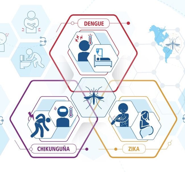 En 2022, l'Organisation Panaméricaine de la Santé (OPS) a mis à jour les définitions de cas de chikungunya et de Zika au travers d’une revue systématique comprenant plus de 16 500 articles scientifiques et la méta-analyse de 110 manifestations cliniques associées à ces maladies. L'objectif de ce document est de fournir des informations synthétiques sur les définitions de cas pour la dengue, le chikungunya et le Zika proposées actuellement par l'OPS, ainsi que des informations sur les phases cliniques et la classification de la gravité de la dengue et du chikungunya.
