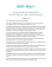Merci, Dr Elmer Huerta, de cette aimable présentation. Chers invités, ambassadeurs, monsieur le Secrétaire général de l’OEA, amis et partenaires, chers collègues de l’OPS, c’est un privilège de m'adresser à vous ce soir. Et c’est avec grand plaisir que je vous souhaite la bienvenue à l’événement de ce soir, alors que nous célébrons le 120e anniversaire de l’Organisation panaméricaine de la Santé. Partout dans la Région des Amériques, de nombreux événements et célébrations ont commémoré ce jalon de l’histoire de la plus ancienne institution de santé publique au monde. Il y a 120 ans, tout près, de l’autre côté de la pelouse de la Maison-Blanche, le Président Theodore Roosevelt et des délégués de 10 autres pays de la Région des Amériques se réunissaient ici même à Washington pour élaborer un plan de contrôle de la fièvre jaune, qui ravageait notre Région et retardait la construction du canal de Panama. C’est lors de cette réunion historique que l’OPS est née, chargée d'une mission simple mais formidable : apporter la santé à tous les peuples des Amériques. Cet événement majeur a marqué le début de la diplomatie sanitaire pour notre Région, créant un précédent à suivre pour les pays du monde entier. En repensant aux années passées et à l’histoire de cette institution, je me rappelle le pouvoir et l’importance de la solidarité pour bâtir un avenir plus sain et plus prometteur. Ensemble, l’OPS et ses États Membres ont éradiqué des maladies, mis en place des systèmes de santé et fait en sorte que davantage de personnes dans la Région puissent mener une vie saine et productive. Notre Région a fait tout cela en dépit des différences politiques, durant des conflits mondiaux et nationaux et malgré les nombreux défis auxquels elle a fait face au cours des 120 dernières années. Depuis 120 ans, la Région des Amériques mise sur la coopération parce que nous avons compris que notre santé, notre sécurité et notre prospérité sont interdépendantes. Ensemble, nous avons également compris la valeur et l’acceptation universelles de la santé, ainsi que son potentiel à servir de passerelle pour la paix, la solidarité et la compréhension. C’est pourquoi la Région des Amériques défend depuis longtemps la cause de la santé. Ce soir, nous entendrons les messages de trois anciens directeurs du Secrétariat de l’OPS, qui ont contribué à ces succès sur une période de 30 ans : le Dr Carlisle Guerra de Macedo, Sir George Alleyne et le Dr Mirta Roses. Merci pour les progrès que vous avez réalisés grâce à votre leadership exceptionnel, qui nous aura permis de marcher sur vos traces. Je tiens également à rendre hommage et à exprimer mes remerciements à tous les anciens membres du personnel et collaborateurs occasionnels de l’OPS qui, au cours des 120 dernières années, ont servi les peuples des Amériques avec une grande abnégation et une excellence hors pair. J’ai eu l’honneur de diriger l’OPS en tant que directrice pendant une décennie, et j’ai vu de mes propres yeux l’impact de cette institution. Au cours de mon mandat, nous avons éliminé la transmission endémique de la rougeole et de la rubéole, aidé huit pays à mettre fin à la transmission mère-enfant du VIH et de la syphilis et soutenu quatre autres pays dans l’élimination de l’onchocercose. Au cours des dix dernières années, nous avons été confrontés ensemble à des épidémies de Zika et de Chikungunya, à des flambées épidémiques de choléra et de fièvre jaune, ainsi qu’à des poussées périodiques de grippe et de dengue. Nous avons surmonté ces défis uniquement parce que nous avons travaillé ensemble, en partageant des données, des enseignements et des compétences expertes. La pandémie de COVID s’est distinguée par son ampleur et sa portée, mais elle a souligné, comme jamais auparavant, l’importance de la solidarité et du panaméricanisme comme fondement de la riposte aux crises. Alors que nous nous tournons vers l’avenir, j’espère que notre Région pourra continuer à considérer la santé comme essentielle pour l’édification de sociétés plus productives et plus prospères. J'espère aussi que, quels que soient les défis qui nous attendent, nous continuerons de compter sur nos valeurs régionales de solidarité et de collaboration et sur notre engagement inébranlable envers l’équité en santé. Ces valeurs ont été la pierre angulaire de notre institution et la raison pour laquelle nous avons pu accomplir tant de choses. Pour autant, ce soir, il ne s'agit pas d'établir une vision mais de célébrer. Tout au long de cette soirée, vous entendrez des dirigeants de toute notre Région qui ont été témoins des progrès en matière de santé et qui continuent de jouer un rôle important dans l'héritage de l’OPS. Avant d’inviter d’autres personnes à venir sur scène, je tiens à vous laisser avec une note de gratitude. Cela a été un honneur d’être votre Directrice de l’OPS. Je tiens à vous remercier tous de la confiance que vous m’avez accordée et de votre volonté de travailler de concert, au nom de la santé de notre Région. Je tiens également à remercier le personnel incroyable de cette organisation, dont l’engagement et le professionnalisme me remplissent d'une humilité profonde. J’ai beaucoup appris de vous et je resterai votre champion, longtemps après la fin de ma mission à l’OPS. Merci à tous de votre attention. Dr Huerta, je vous rends la parole. |