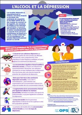 Cette fiche d’information met en évidence la relation complexe entre la consommation d’alcool et les troubles dépressifs. La consommation d’alcool peut conduire à la dépression, et la dépression peut conduire à une consommation accrue d’alcool. En plus de décrire les caractéristiques des troubles dépressifs, la fiche d’information explique pourquoi la consommation d’alcool n’est pas une solution pour faire face à la dépression. La fiche d’information comprend des recommandations sur ce que vous pouvez faire si vous vous sentez déprimé ou si vous pensez que vous buvez trop.