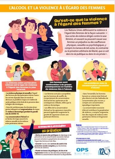 Cette fiche d’information présente une définition et des données probantes sur la violence à l’égard des femmes, y compris pendant la pandémie de COVID-19, et les méfaits causés par l’alcool sur le sujet. La consommation d’alcool est considérée comme un facteur de risque associé à la violence sexuelle et à la violence entre partenaires intimes. La fiche d’information souligne les conséquences auxquelles sont confrontées les femmes victimes de violence liée à l’alcool et les problèmes liés à la consommation abusive d’alcool. Il fournit également une liste concise de la façon dont ces préjudices peuvent être traités.