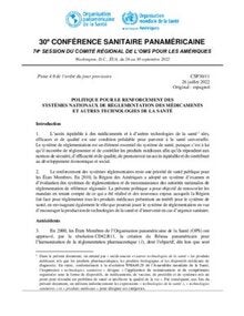 CSP30/11 - Politique pour le renforcement des systèmes nationaux de réglementation des médicaments et autres technologies de la santé