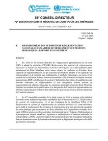 CD58/INF/14 - Rapports d’avancement sur les questions techniques: Renforcement des autorités de réglementation nationale en matière de médicaments et produits biologiques : rapport d’avancement