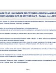 Questionnaire Pour L'inventaire Des Potentielles Defaillances De Securite Des Etablissements De Sante En Haïti