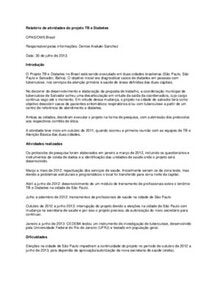 Relatorio actividades projeto TB-Diabetes 30 Julho 2013