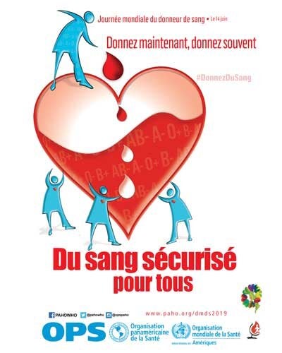 T-shirt: Du sang sécurisé pour tous. Donnez maintenant, donnez souvent (JPG); 2019