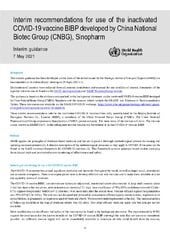 Vaccin inactivé COVID-19 BIBP de Sinopharm - Recommandations intermédiaires et informations complémentaires