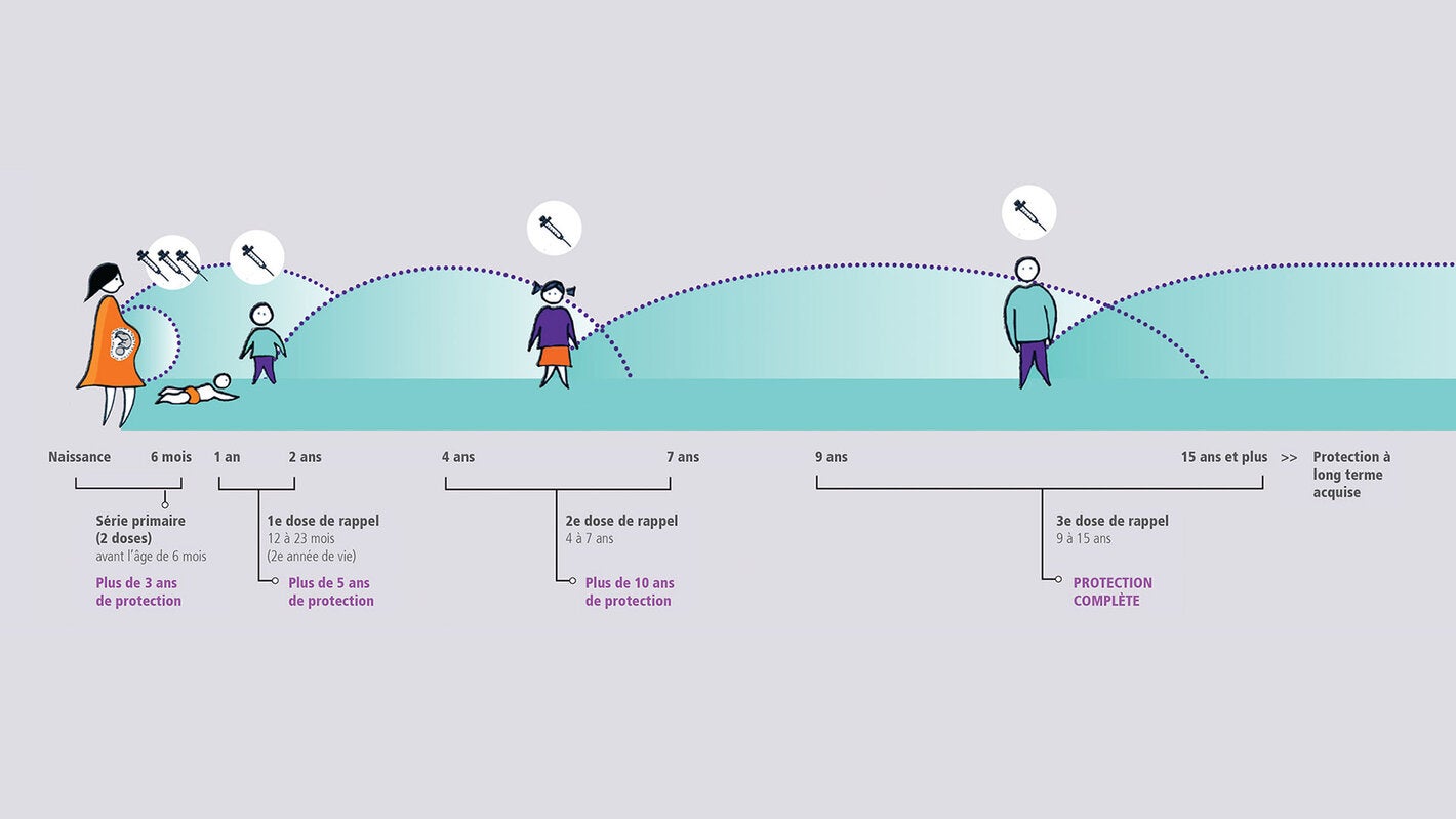 | La vaccination de la mère et la santé du nourrisson doivent être considérées comme un continuum, au sein duquel une seule intervention entraîne des répercussions positives sur le bien-être de deux personnes et renforce la capacité intergénérationnelle à préserver l’immunité. | Administré pendant une grossesse, le vaccin Tdap s’est montré très efficace pour prévenir la morbidité relative à la coqueluche (69 % à 91 %), les hospitalisations (91 % à 94 %) et la mortalité (95 %) chez les nourrissons. |
