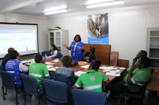 Animée par des épidémiologistes de l'OPS/OMS en Haïti, cette formation fait partie du soutien technique de l'organisation aux autorités sanitaires haïtiennes pour préparer une réponse adéquate à une éventuelle introduction du COVID-19 dans le pays.