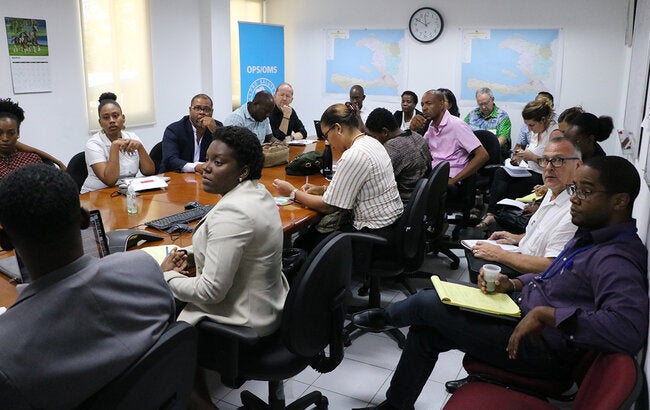 En support au Ministère de la Santé Publique et de la Population, l’OPS/OMS en Haiti a accueilli ce mercredi 18 mars 2020, la première rencontre de coordination du secteur santé à grande échelle pour faire face à une possible introduction de COVID-19 dans le pays.