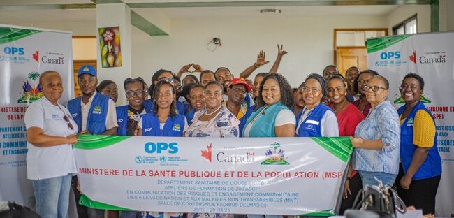 Afin de contribuer à l’amélioration de la couverture vaccinale et de renforcer l’accès à une information fiable sur les MNT, l’Organisation panaméricaine de la Santé/Organisation mondiale de la Santé (OPS/OMS), avec l’appui financier du Gouvernement Canadien, à travers l’initiative CanGive, a apporté un appui technique au MSPP en soutenant l’organisation de huit sessions de formation de trois jours à l’intention de 200 agents de santé communautaires polyvalents (ASCP) de la Direction Sanitaire de l’Ouest.