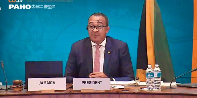 Washington, D.C., 20 septembre 2021 (OPS/OMS) - Le ministre jamaïcain de la Santé et du Bien-être, le Dr Christopher Tufton, a été élu président du 59e Conseil directeur de l'Organisation panaméricaine de la Santé (OPS), qui réunit les autorités sanitaires pour déterminer les priorités et les politiques de l'Organisation correspondant à la santé dans les Amériques, notamment la réponse à la pandémie de COVID-19 et à d'autres défis sanitaires.