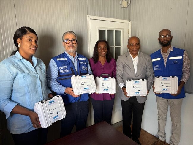 Port-au-Prince, 24 septembre 2025 (OPS) – Une cérémonie de remise de dix appareils de thermo-coagulation s’est tenue à la Direction de la Santé de la Famille (DSF) du Ministère de la Santé Publique et de la Population (MSPP) ce mardi 23 septembre 2025. Cet appui de l’Organisation panaméricaine de la Santé/Organisation mondiale de la Santé (OPS/OMS) vise à renforcer l’offre de dépistage et de traitement des lésions précancéreuses du col de l’utérus en Haïti.