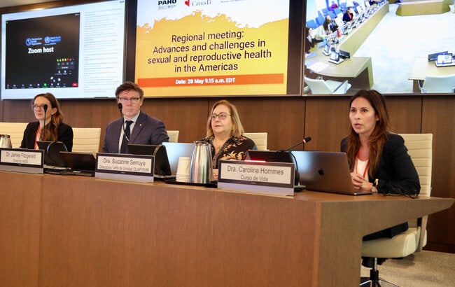 D'autres autorités de l'OPS, des représentants des missions de l'Organisation des États américains (OEA), les ministères de la Santé des États membres de l'OPS et des organisations de la société civile ont participé à la réunion. Cette action a été réalisée avec le soutien d'Affaires Mondiales Canada, dans le cadre du projet Améliorer la santé des femmes et des adolescentes en situation de vulnérabilité.