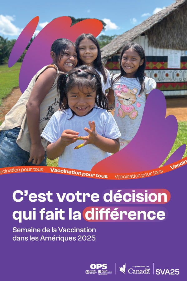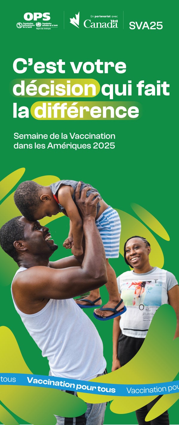 Du 26 avril au 3 mai 2025, l'Organisation Panaméricaine de la Santé (OPS), en collaboration avec les pays et territoires de la Région des Amériques et ses partenaires, célébrera la 23e Semaine de la vaccination dans les Amériques (SVA) et la 14e Journée Mondiale de la Vaccination avec l'appel à l'action :