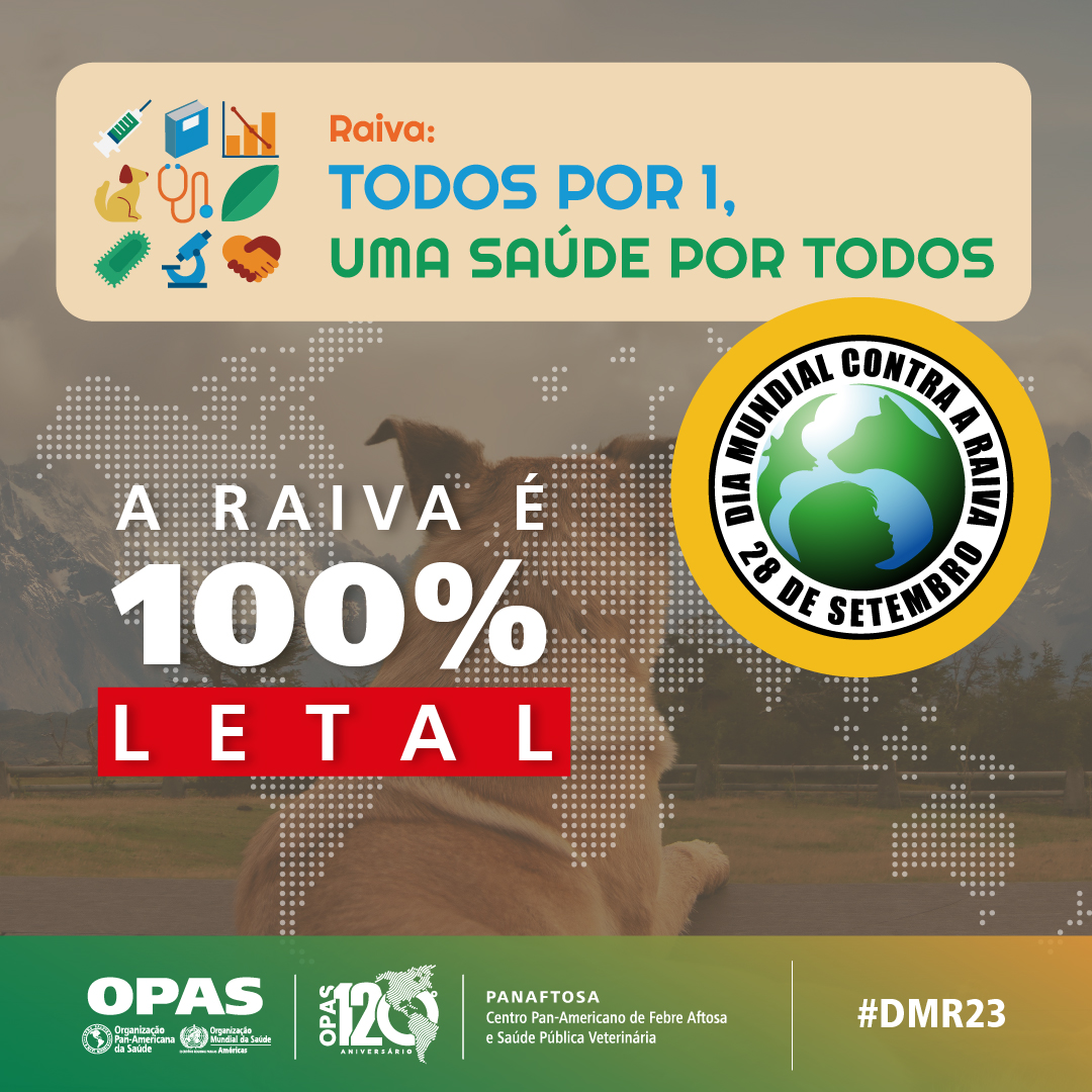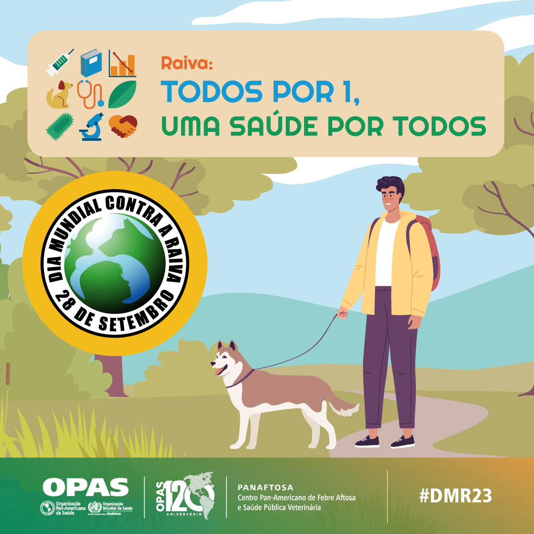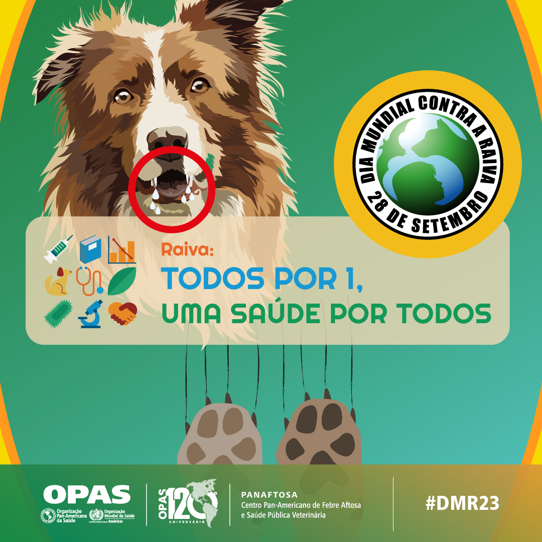 O Dia Mundial contra a Raiva (DMR), instituido pela Aliança Global para o Control da Raiva (GARC) e reconhecido pela Organização Mundial da Saúde (OMS) a cada 28 de septiembre, é uma data trascendental para promover a luta contra esta doença y reforçar a conscientização sobre sua prevenção. A raiva é uma zoonose com letalidade de 100%. Endêmica en vários continentes, estima-se que a cada ano morram alrededor de 60.000 pessoas no mundo, 40% delas crianças. A eliminação da raiva humana transmitida por cães é possível, o progresso de muitos países da região das Américas nessa conquista é prova disso. O lema deste ano "Todos por 1, Uma Saúde por Todos" evidencia a necessidade de concretizar uma abordagem intersectorial e multidisciplinar com a intervenção e colaboração de equipes professionais dos setores da saúde humana, animal e ambiental.