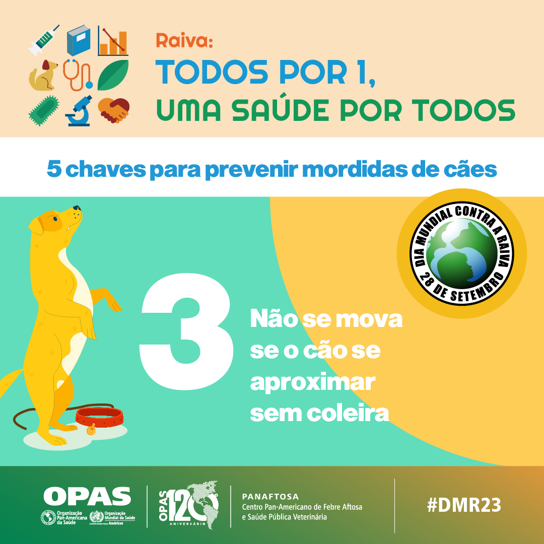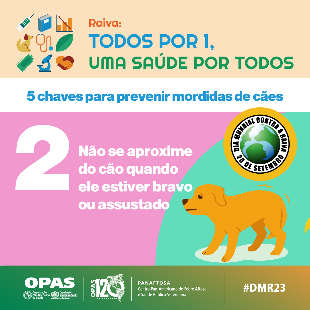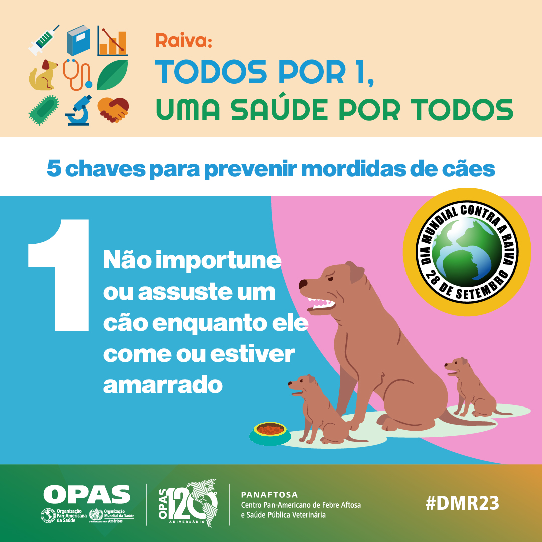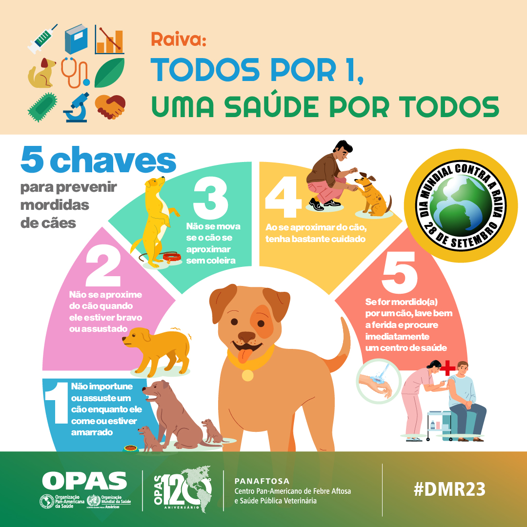 O Dia Mundial contra a Raiva (DMR), instituido pela Aliança Global para o Control da Raiva (GARC) e reconhecido pela Organização Mundial da Saúde (OMS) a cada 28 de septiembre, é uma data trascendental para promover a luta contra esta doença y reforçar a conscientização sobre sua prevenção. A raiva é uma zoonose com letalidade de 100%. Endêmica en vários continentes, estima-se que a cada ano morram alrededor de 60.000 pessoas no mundo, 40% delas crianças. A eliminação da raiva humana transmitida por cães é possível, o progresso de muitos países da região das Américas nessa conquista é prova disso. O lema deste ano "Todos por 1, Uma Saúde por Todos" evidencia a necessidade de concretizar uma abordagem intersectorial e multidisciplinar com a intervenção e colaboração de equipes professionais dos setores da saúde humana, animal e ambiental.