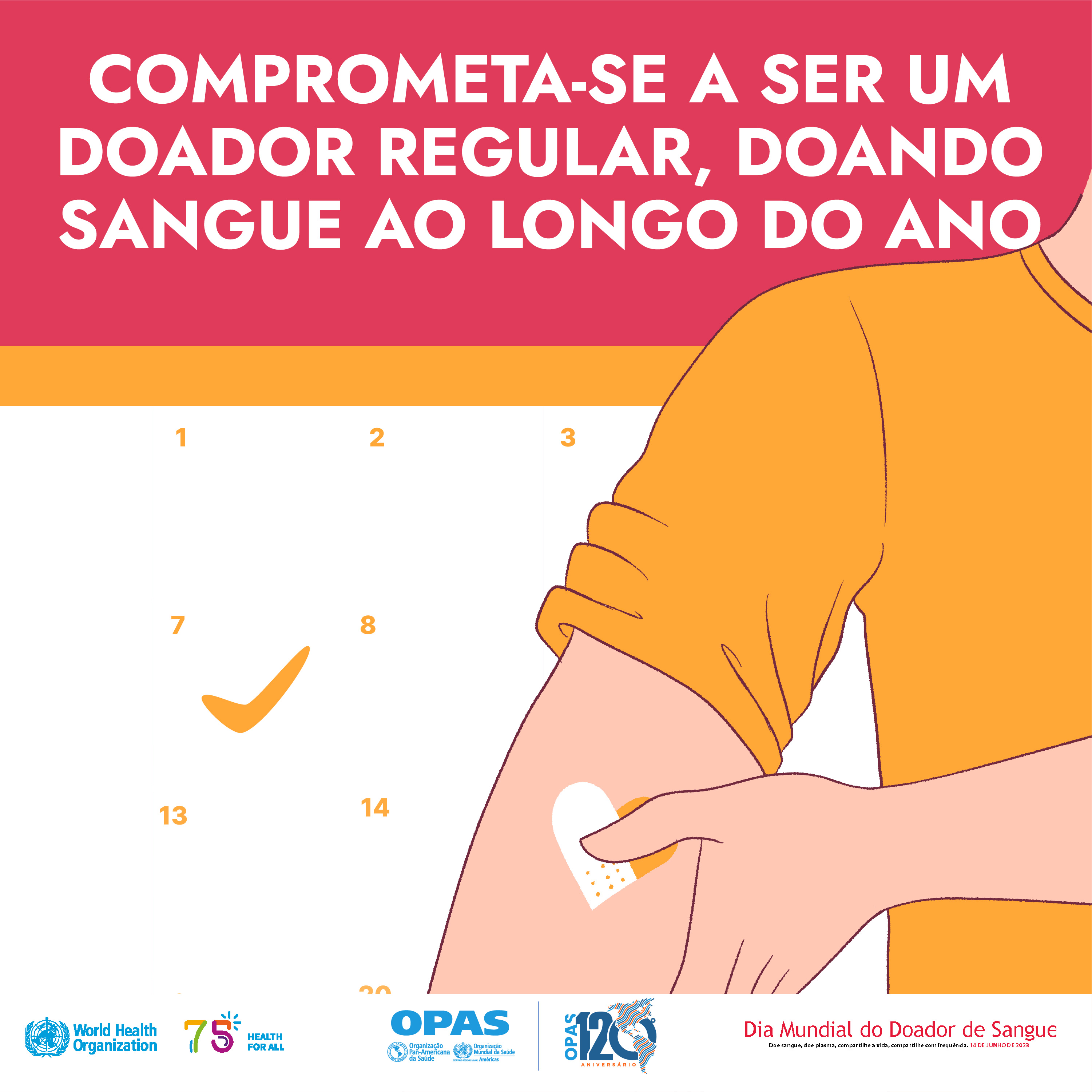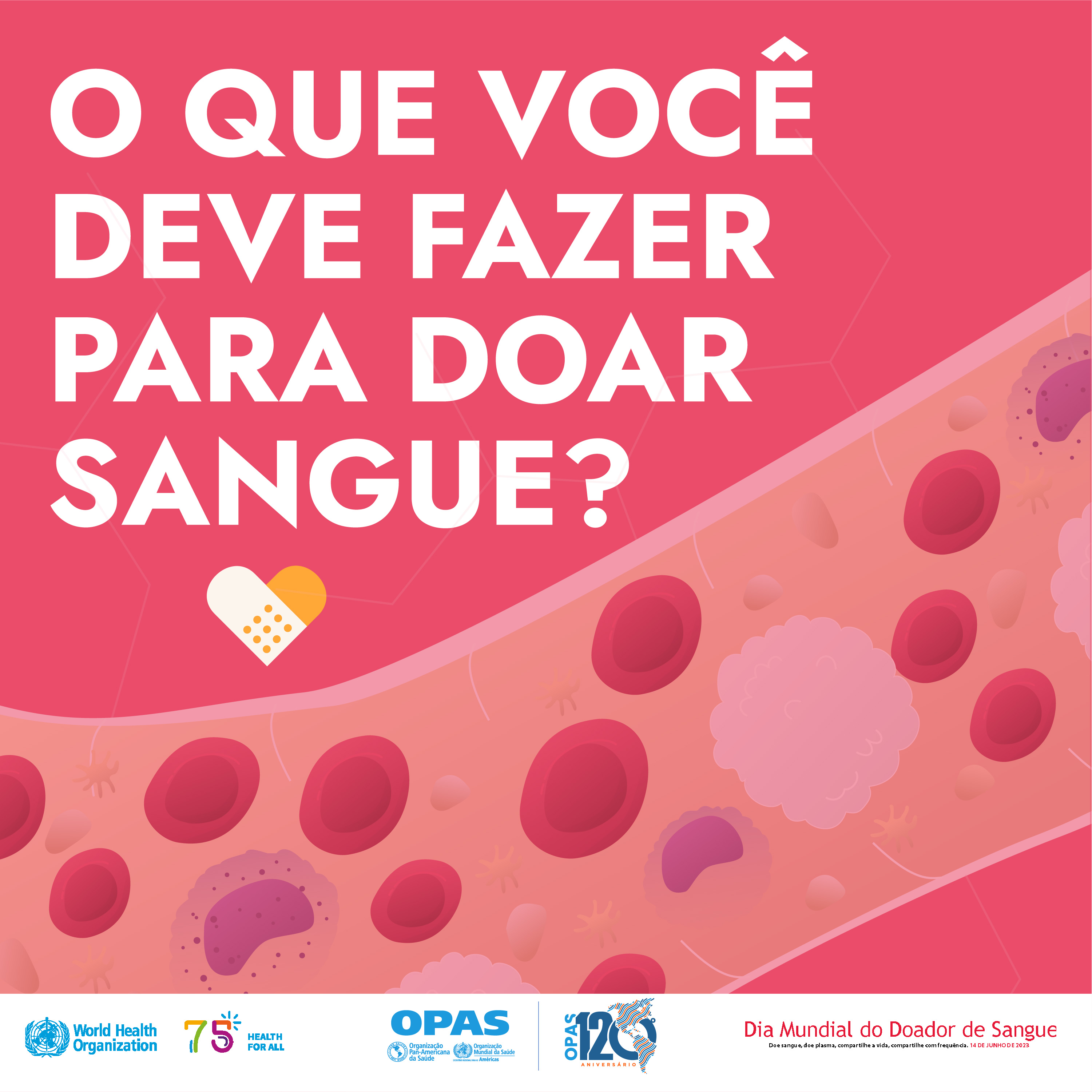 O Dia Mundial do Doador de Sangue será novamente comemorado em todo o mundo em 14 de junho de 2023. Oficialmente designado como um evento anual pela Assembleia Mundial da Saúde, em 2005, a data é uma oportunidade especial para celebrar e agradecer aos doadores voluntários de todo o mundo por doarem seu sangue e é um momento oportuno para tomar medidas para alcançar o acesso universal a transfusões de sangue seguras.
