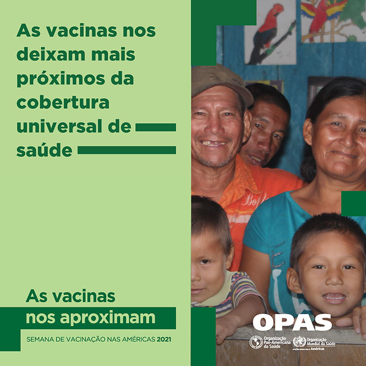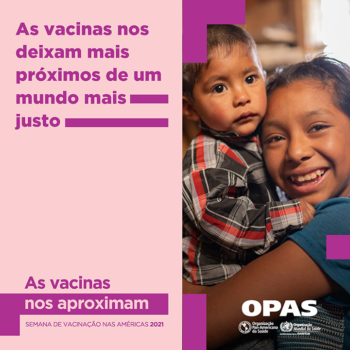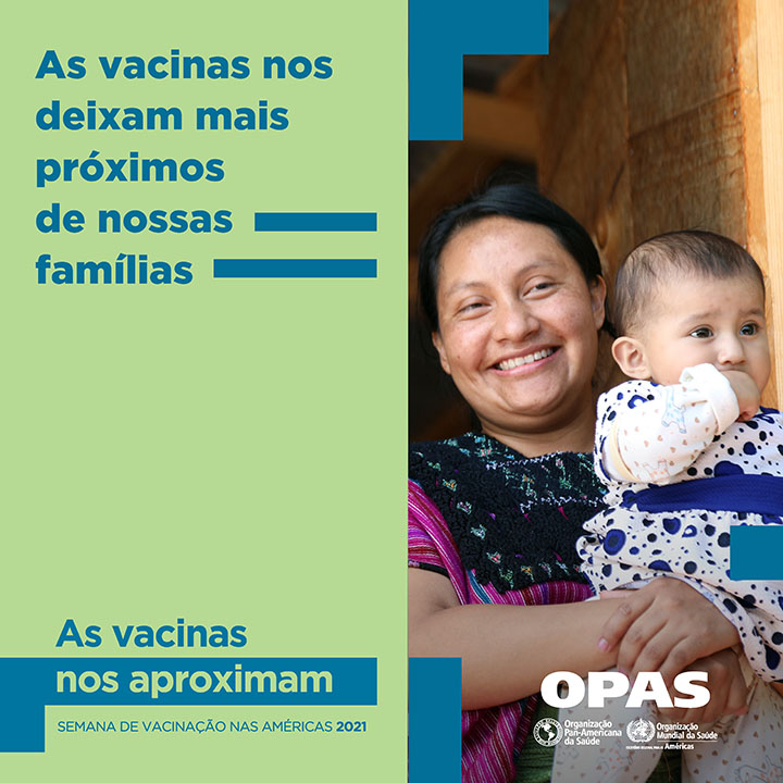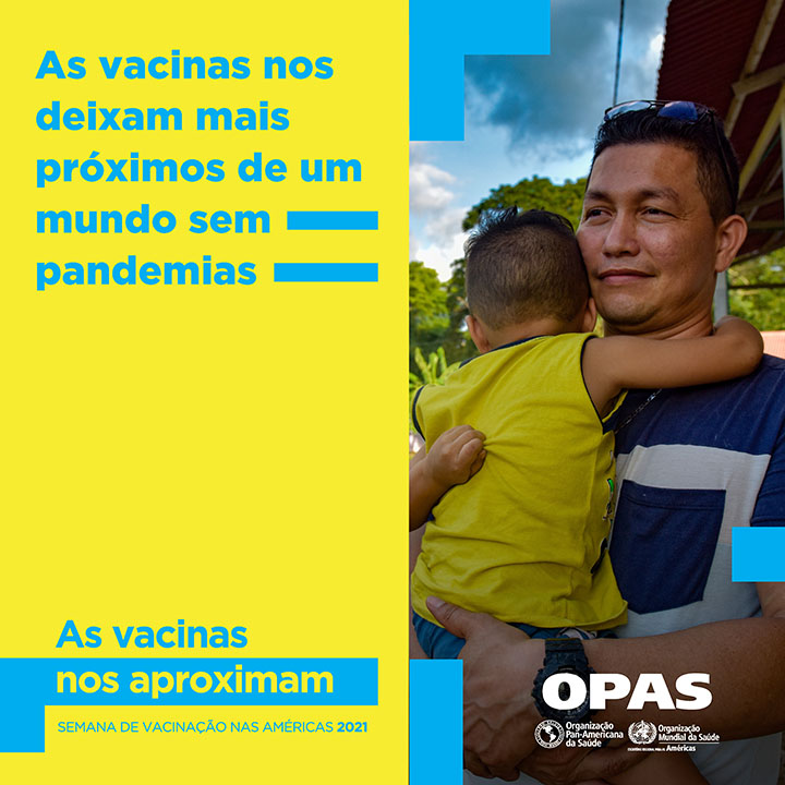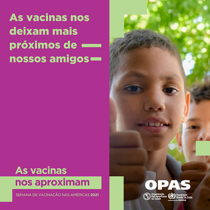 Entre 24 e 30 de abril de 2021, a Organização Pan-Americana da Saúde (OPAS) e seus parceiros celebrarão a 19ª Semana de Vacinação nas Américas sob o lema "As vacinas nos aproximam". #AsVacinasFuncionam"