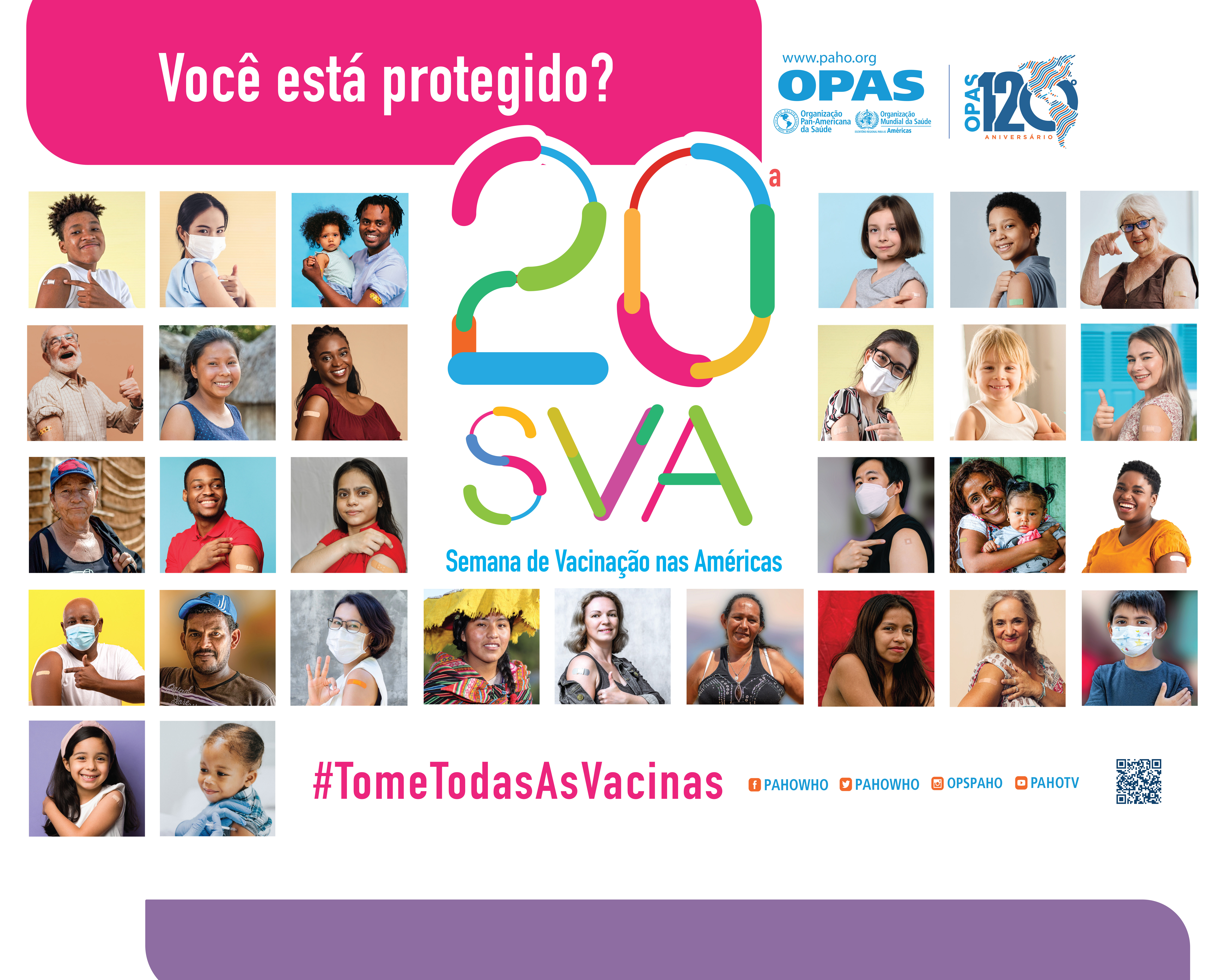 De 23 a 30 de abril de 2022, a Organização Pan-Americana da Saúde (OPAS), juntamente com os países e territórios da Região das Américas e seus parceiros, celebrará a 20ª Semana de Vacinação nas Américas (SVA) e a 11ª Semana Mundial de Imunização (SMI) com o chamado à ação “Você está protegido? Tome todas as vacinas".