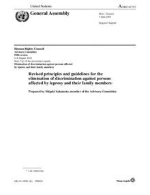 Revised principles and guidelines for the elimination of discrimination against persons affected by leprosy and their family members; 2010 (Sólo en inglés)