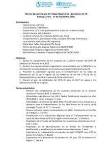 Informe Reunión Grupo de Trabajo Regional de Laboratorios de TB. Arequipa, Perú; 2016 (Spanish only)