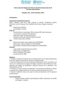 Informe Reunión Regional de Jefes de Laboratorios Nacionales de TB de Países Seleccionados. Arequipa, Perú; 2016 (Spanish only)