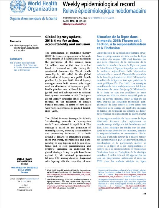 Weekly Epidemiological Record, 2 September 2016, vol. 91, 35 (pp. 405–420)