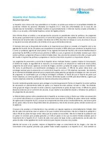 Resumen Ejecutivo del documento “Hepatitis Virales: Política Mundial”; 2010 (Spanish only)