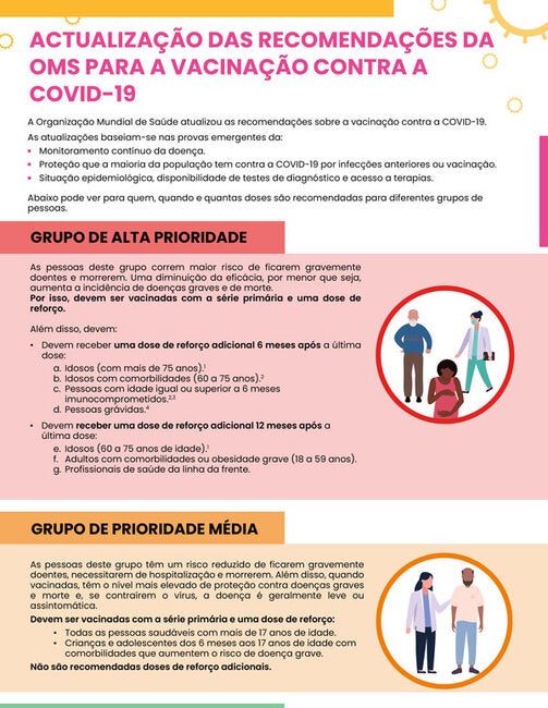 A Organização Mundial de Saúde atualizou as recomendações sobre a vacinação contra a COVID-19. As atualizações baseiam-se nas provas emergentes da: