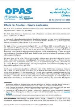 Em 2020, Brasil, República Dominicana, Haiti e República Bolivariana da Venezuela relataram casos confirmados de difteria.