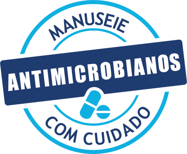 Autocolante nº1: "Antimicrobianos. Manuseie com cuidado"