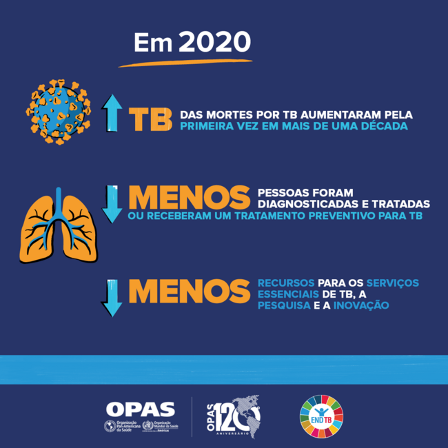 Card para redes sociais: Em 2020, as mortes por TB aumentaram pela primeira vez em mais de uma década