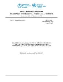 CD58/5, Add. I - Relatório da avaliação de fim do biênio do Programa e Orçamento da OPAS 2018-2019/Relatório final da implementação do Plano Estratégico da OPAS 2014-2019
