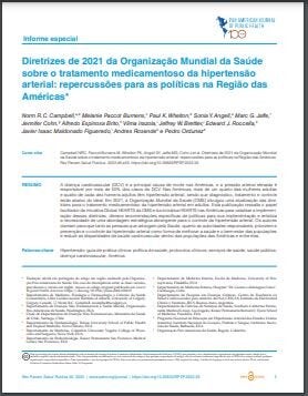 A doença cardiovascular (DCV) é a principal causa de morte nas Américas, e a pressão arterial elevada é responsável por mais de 50% dos casos de DCV. Nas Américas, mais de um quarto das mulheres adultas e quatro de cada dez homens adultos têm hipertensão arterial, sendo que diagnóstico, tratamento e controle estão abaixo do ideal. Em 2021, a Organização Mundial da Saúde (OMS) divulgou uma atualização das diretrizes para o tratamento medicamentoso da hipertensão arterial em adultos. Esta publicação ressalta o papel facilitador da iniciativa Global HEARTS da OMS e da iniciativa HEARTS nas Américas para catalisar a implementação dessas diretrizes, oferece recomendações específicas de políticas para sua implementação e enfatiza a necessidade de uma abordagem estratégica abrangente para o controle da hipertensão arterial. Os autores clamam para que tanto as pessoas que advogam pela Saúde, quanto as autoridades responsáveis, priorizem a prevenção e o controle da hipertensão arterial como forma de melhorar a saúde e o bem-estar das populações e reduzir as disparidades de saúde cardiovascular dentro das populações das Américas e entre elas.