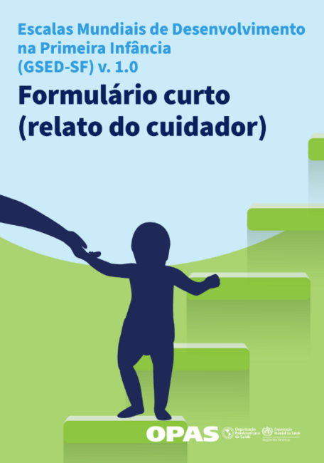 Este Formulário curto de relato do cuidador faz parte do pacote de materiais das Escalas Mundiais de Medição do Desenvolvimento na Primeira Infância (GSED, na sigla em inglês), versão 1.0. O GSED é um conjunto de instrumentos de acesso aberto que constitui um método padronizado para medir o desenvolvimento infantil até os 36 meses de idade em diferentes culturas e contextos. Foi elaborado para oferecer à comunidade global parâmetros de medição populacionais do desenvolvimento na primeira infância que possam ser comparáveis entre países. Não é necessário pagar qualquer taxa ou royalties para usar estas escalas, que foram projetadas e testadas para serem linguisticamente e culturalmente neutras, de modo que não deveria ser necessário adaptálas aos contextos locais. No entanto, caso alguns itens ou partes deles não sejam adequados, os avaliadores devem seguir os passos indicados no guia de adaptação e tradução, que faz parte do pacote GSED. Para obter mais informações, visite: https://www.paho.org/pt/topicos/saude-das-criancas/escalas-mundiais-desenvolvimento-na-primeira-infancia-gsed-nas-americas