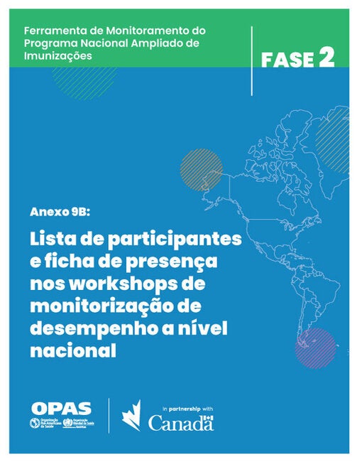 Ferramenta de Monitoramento do Programa Nacional Ampliado de Imunizações - Anexo 9B. Lista de participantes e ficha de presença nos workshops de monitorização de desempenho a nível nacional