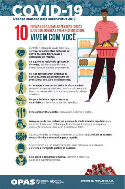 Infográfico COVID-19: Formas de ajudar as pessoas idosas e/ou com doenças pré-existentes que vivem com você