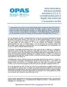 A Organização Pan-Americana da Saúde/Organização Mundial da Saúde (OPAS/OMS) emite esta Nota Informativa para informar os Estados Membros sobre a situação da Influenza A(H3N2) relacionada ao subclado K em várias regiões do mundo e, ao mesmo tempo, reiterar as recomendações formuladas no Alerta Epidemiológico da OPAS/OMS de 4 de dezembro de 2025 em relação à Influenza sazonal na Região das Américas. |