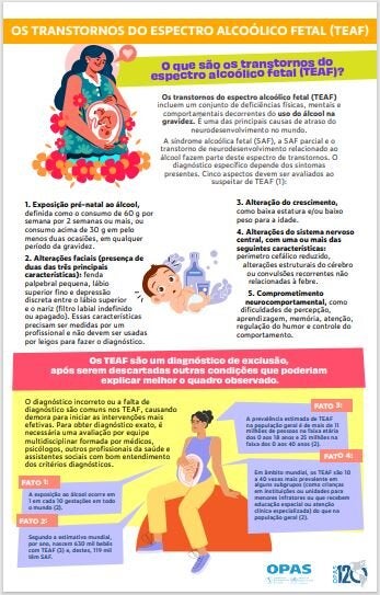 A série de folhetos informativos sobre álcool apresenta conceitos básicos sobre álcool e saúde. Esse folheto informativo define e descreve os transtornos do espectro alcoólico fetal, suas consequências ao longo da vida e a importância de reconhecê-los. Também destaca ações de diagnóstico, intervenção e conscientização sobre o tema, além de recomendações importantes para o público-alvo.