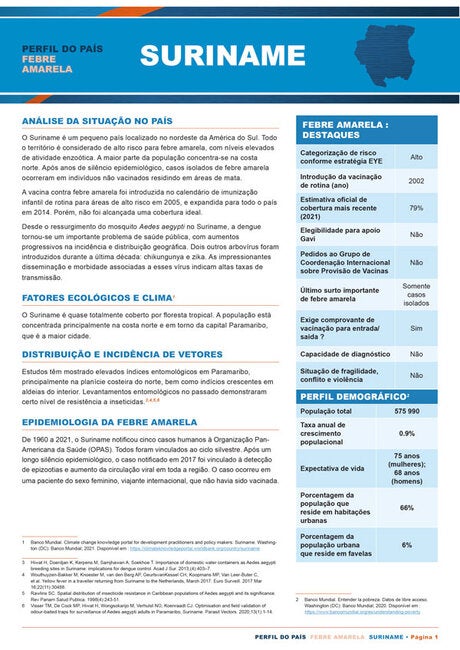 Perfil nacional da febre amarela Suriname