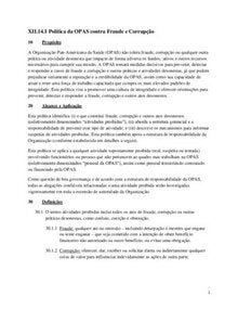 A Organização Pan-Americana da Saúde (OPAS) não tolera fraude, corrupção ou qualquer outra prática ou atividade desonesta que impacte de forma adversa os fundos, ativos e outros recursos necessários para cumprir sua missão. A OPAS tomará medidas decisivas para prevenir, detectar e responder a casos de fraude e corrupção e outras práticas e atividades desonestas, já que podem prejudicar seriamente a reputação e a credibilidade da OPAS, assim como sua capacidade de atrair e reter uma força de trabalho capacitada que cumpra os mais elevados padrões de integridade. Esta política visa a promover uma cultura de integridade e oferecer orientações para prevenir, detectar e responder a fraude, corrupção e outros atos desonestos. |