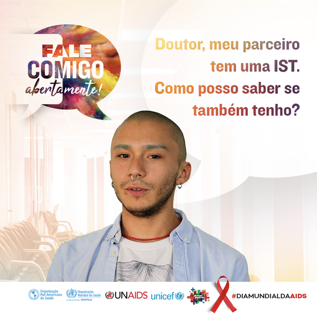 Cartão postal para redes sociais: "Doutor, meu parceiro tem uma IST. Como posso saber se também tenho?"