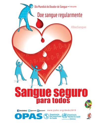T-shirt: Sangue seguro para todos. Doe sangue regularmente (JPG); 2019