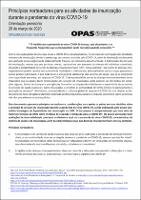 O presente documento apresenta princípios orientadores e considerações para apoio aos países na sua tomada de decisões relativamente à prestação de serviços de vacinação durante a pandemia de COVID-19 e conta com a aprovação do Grupo Consultivo Estratégico de Peritos em Vacinação da OMS. O documento é complementado por uma grande variedade de materiais técnicos da OMS para as medidas de resposta e mitigação da COVID-194. Cada país terá de empreender avaliações de risco individuais, com base na dinâmica local da transmissão da COVID-19, nas características da vacinação e do sistema de saúde e na actual situação epidemiológica das DEV no seu território.