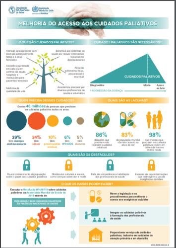 Este infográfico fornece informações simples sobre cuidados paliativos, quem precisa e quando, lacunas e desafios, e o que os países podem fazer para melhorar o acesso aos cuidados paliativos.