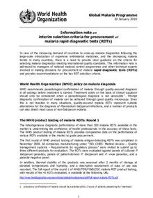 Information note on interim selection criteria procurement - malaria rapid diagnostic tests (RDTs); 2010 (Sólo en inglés)