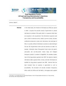 Good Regulatory Practice. US Food and Drug Administration’s Experience Transparency and Accountability