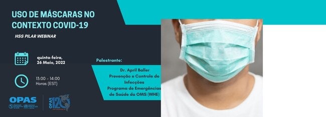 Temos o prazer de convidá-lo a participar do Webinar “Uso de máscaras no contexto COVID-19”. Nosso orador convidado será o Dr. April Baller, da Prevenção e Controle de Infecções, Programa de Emergências em Saúde da OMS (WHE).