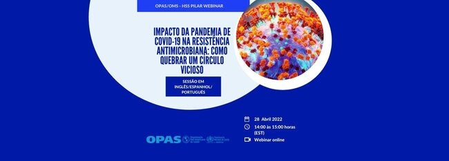 Workshop: “Impacto da Pandemia de COVID-19 na resistência antimicrobiana: como quebrar um círculo vicioso” que será patrocinado pela OPAS o dia 28 de abril, das 14:00 a 15:00 horas (EST).