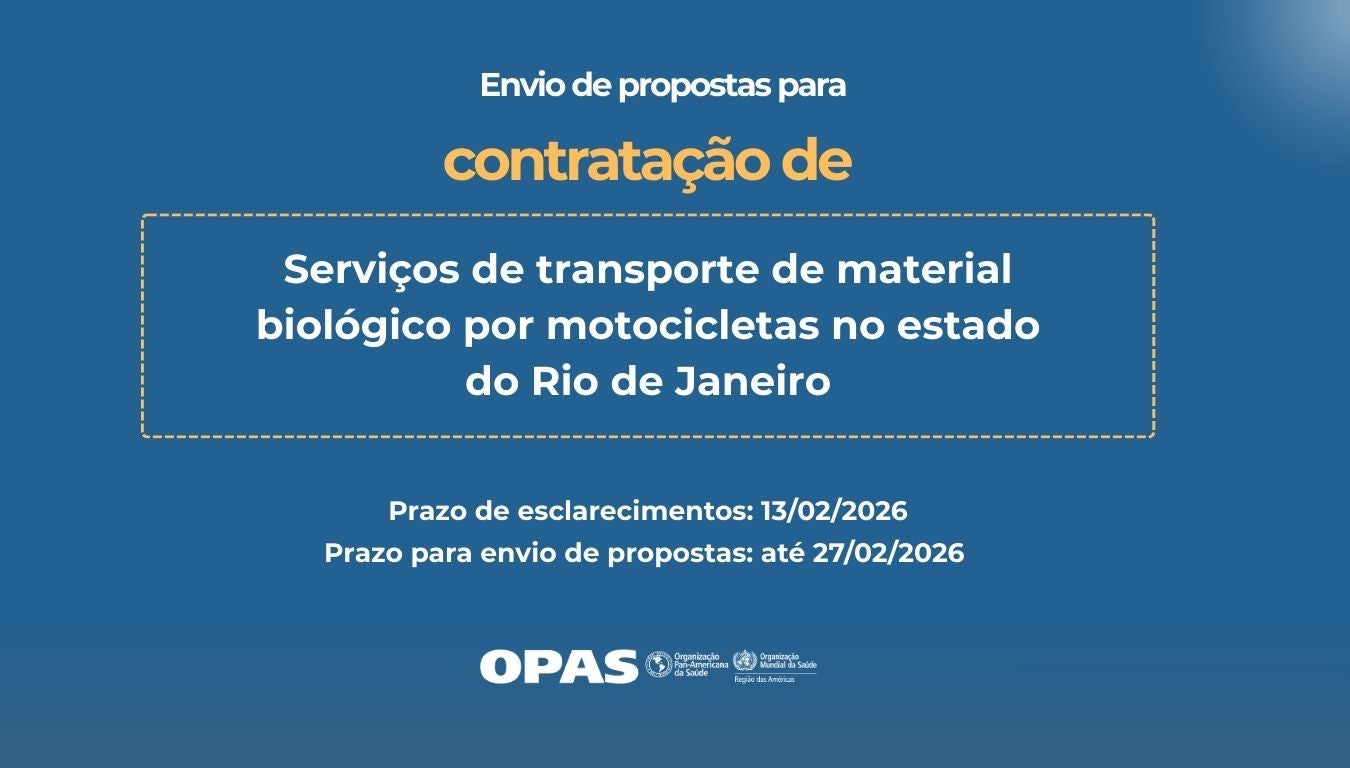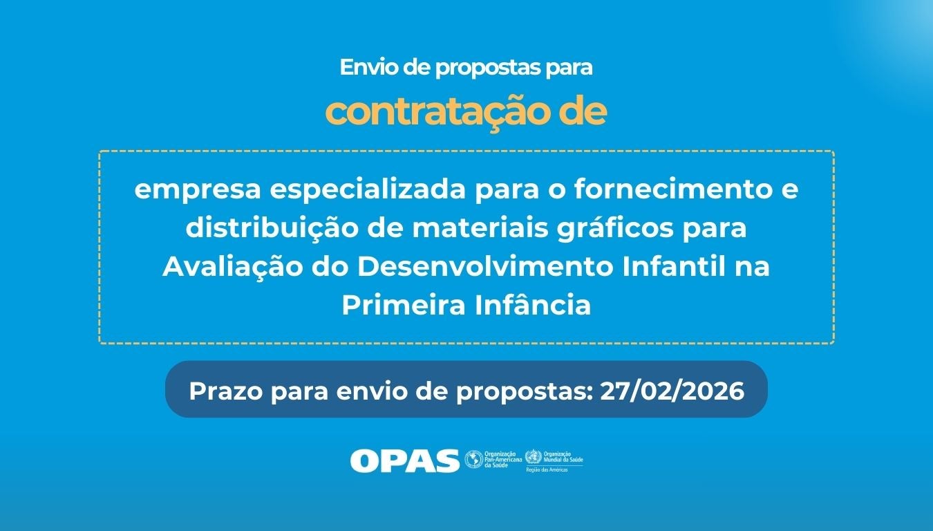 Confira as oportunidades de contratação de empresas especializadas para prestação de serviços e fornecimento de produtos ao escritório da OPAS no Brasil e aos parceiros da Organização no âmbito da cooperação técnica desenvolvida no país.